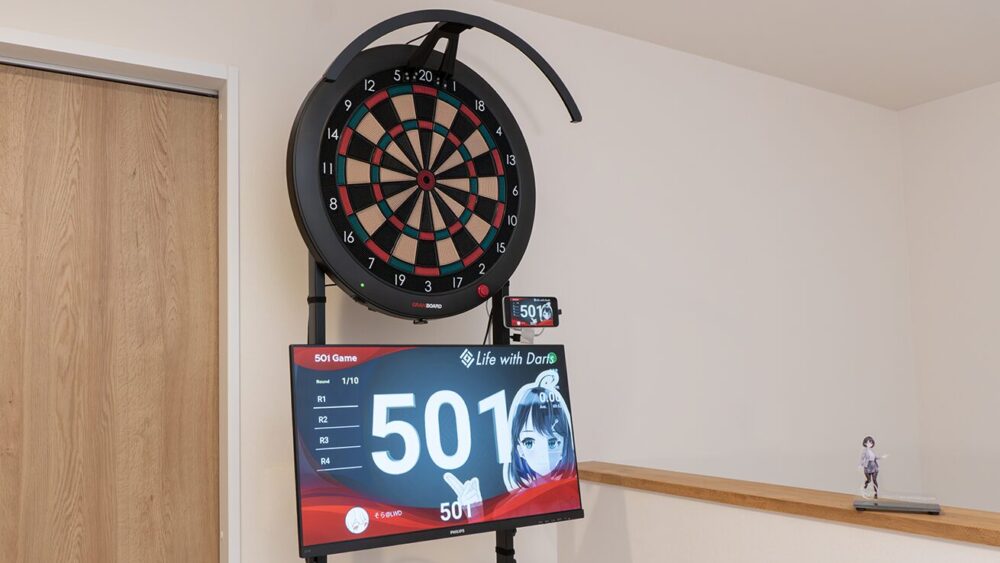 スマホ連動ダーツボードのダーツライブホームやグランボードをプレイする際、ダーツマシンと同じような大画面でプレイしたいと考えた方は多いでしょう。小さいスマホ画面でプレイしていてもスコアが見づらかったり迫力不足だったりして物足りなさを覚えてしまいます。
